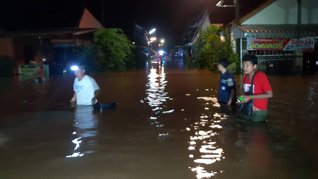 ส่วน ด.ต.อภินันต์ บัณฑิตกุล ผบ.หมู่งานป้องกันปราบปราม บ้านถูกน้ำท่วมจมไปครึ่งหลังต้องวิทยุขอกำลังสายตรวจรถยนต์เวรดึกให้มาช่วยขนของหนีน้ำ รถยนต์ 2 คน รถจักรยานยนต์ 2 คัน รวมถึงทรัพย์สินต่างๆได้รับความเสียหายทั้งหมด นอกจากนี้ยังมีทรัพย์สินของประชาชนจำนวนมากที่ปลูกสร้างบ้านในซอยหลังตลาดสดเทศบาล หมู่บ้านสถานีขนส่งหลังตลาดเทศบาลน้ำเข้าท่วมเต็มพื้นที่ มีประชาชนบางส่วนที่ยังนอนไม่รู้สึกตัว เจ้าหน้าที่กู้ภัย และเจ้าหน้าที่มูลนิธิฯต่างๆ ต้องลงพื้นที่ไปเคาะประตูบ้านประชาสัมพันธ์ให้รีบขนของขึ้นพ้นน้ำ ความคืบหน้าในตอนเช้าจะรายงานให้ทราบต่อไป.