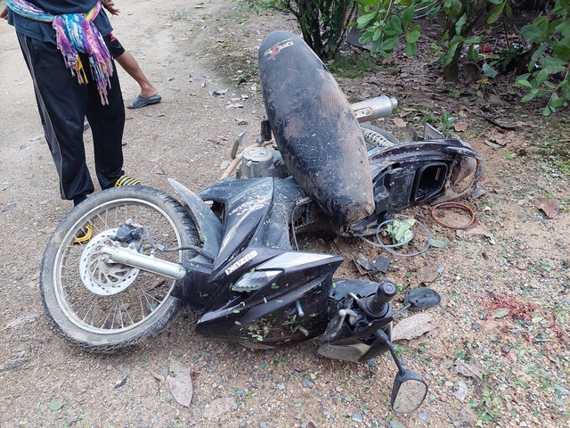 นอกจากนี้ ยังพบรถจักรยานยนต์สภาพพังเสียหาย อยู่ในที่เกิดเหตุอีก 2 คัน คันแรกเป็นรถจักรยานยนต์ยี่ห้อซูซูกิ สีดำ ทะเบียน 1 กข 5517 นครศรีธรรมราช ซึ่งเป็นของผู้ตาย ส่วนคันที่สองเป็นจักรยานยนต์ยี่ห้อฮอนด้า เวฟ สีน้ำเงิน ทะเบียน คจน 964 นครศรีธรรมราช ลักษณะดัดแปลงเป็นรถจักรยานยนต์พ่วงข้าง ซึ่งเป็นรถคู่กรณี