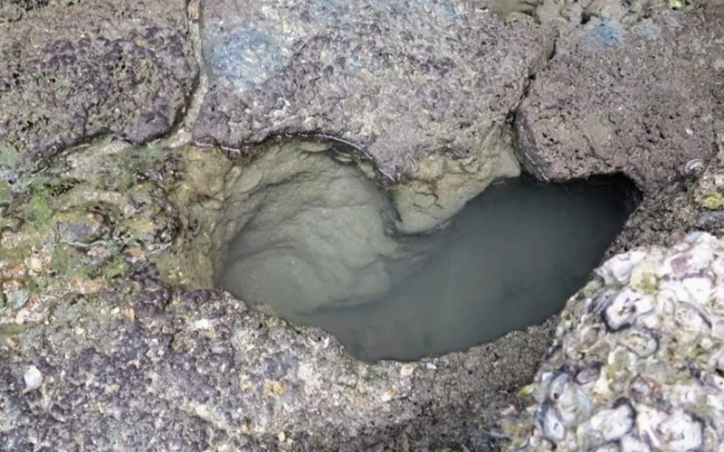 แต่ก็เป็นบ่อกลายเป็นน้ำจืด ชิมแล้วมีรสชาติจืดถึงกร่อย เกิดจากรอยแตกของชั้นหินที่ต่อกับตาน้ำจืดใต้พื้นดิน เมื่อยามน้ำลดน้ำจืดจะดันตัวนำน้ำทะเลออกจนหมดเหลือแต่น้ำจืด