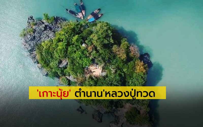 ชาวบ้านจึงเชื่อกันว่าบ่อน้ำที่เห็นบนเกาะนุ้ยนี้เป็นรอยเท้าที่เกิดจากท่านได้เหยียบไว้ในตำนาน สถานที่นี้จึงกลายเป็นที่ศักดิ์สิทธิ์ บริเวณยอดเขาของเกาะนุ้ยจึงมีหลวงปู่ทวดประดิษฐานอยู่ให้กราบไหว้